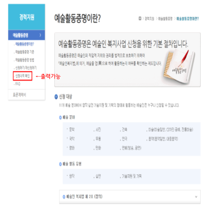 여기서 '예술활동증명'은 예술인의 직업적 지위와 권리를 법적으로 보호하기 위하여 '예술인복지법'에 의거, 예술을 업(業)으로 하여 활동하는지 여부를 확인하는 제도를 말하는데요.