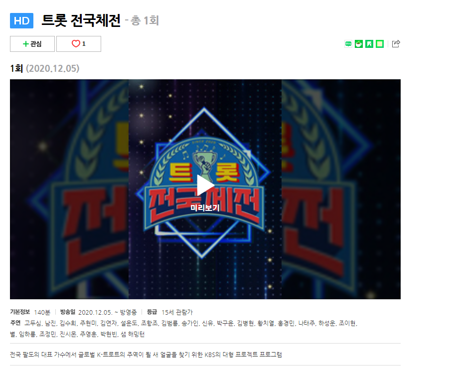 - 1. KBS 트롯 전국체전 방송정보, 방송시간