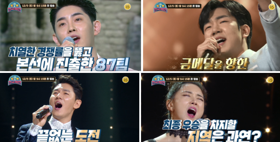 첫방송에서는 9년차 트로트가수인 진해성을 비롯해, 이미 큰 사랑을 받고 있는 설하윤, 허각의 쌍둥이 형이자 가수인 허공 등 예상을 깬 실력자들이 대거 합류하며 흥미로움을 더했습니다. 이외에도 개그맨 이상호-이상민 형제, ‘편애중계’ 우승자 김산하, 마이진, 반가희, 완이화, 윤서령을 비롯해 87팀의 참가자들이 도전장을 내밀었습니다.